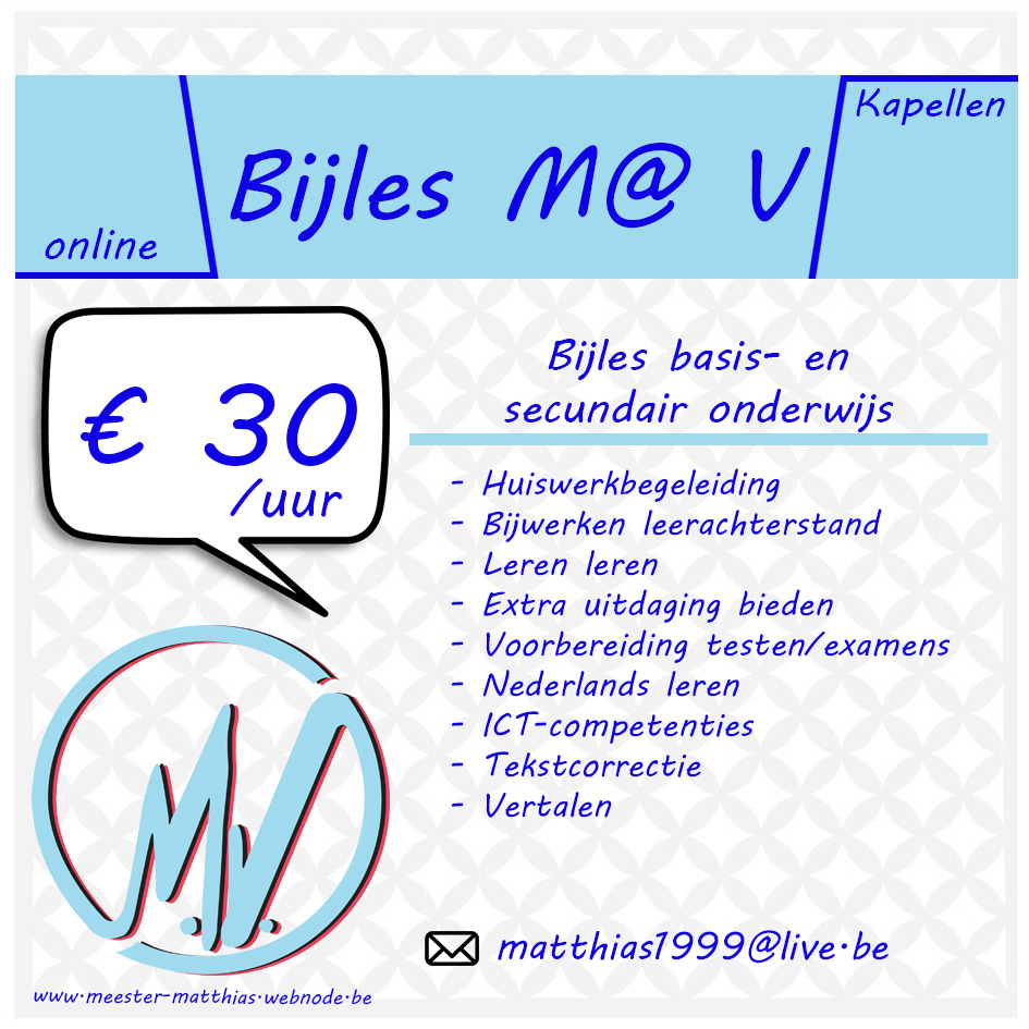 Ik geef sinds 2019 bijles aan leerlingen van de derde kleuterklas tot en met het zesde middelbaar. Hierdoor bieden er verschillende mogelijkheden aan: